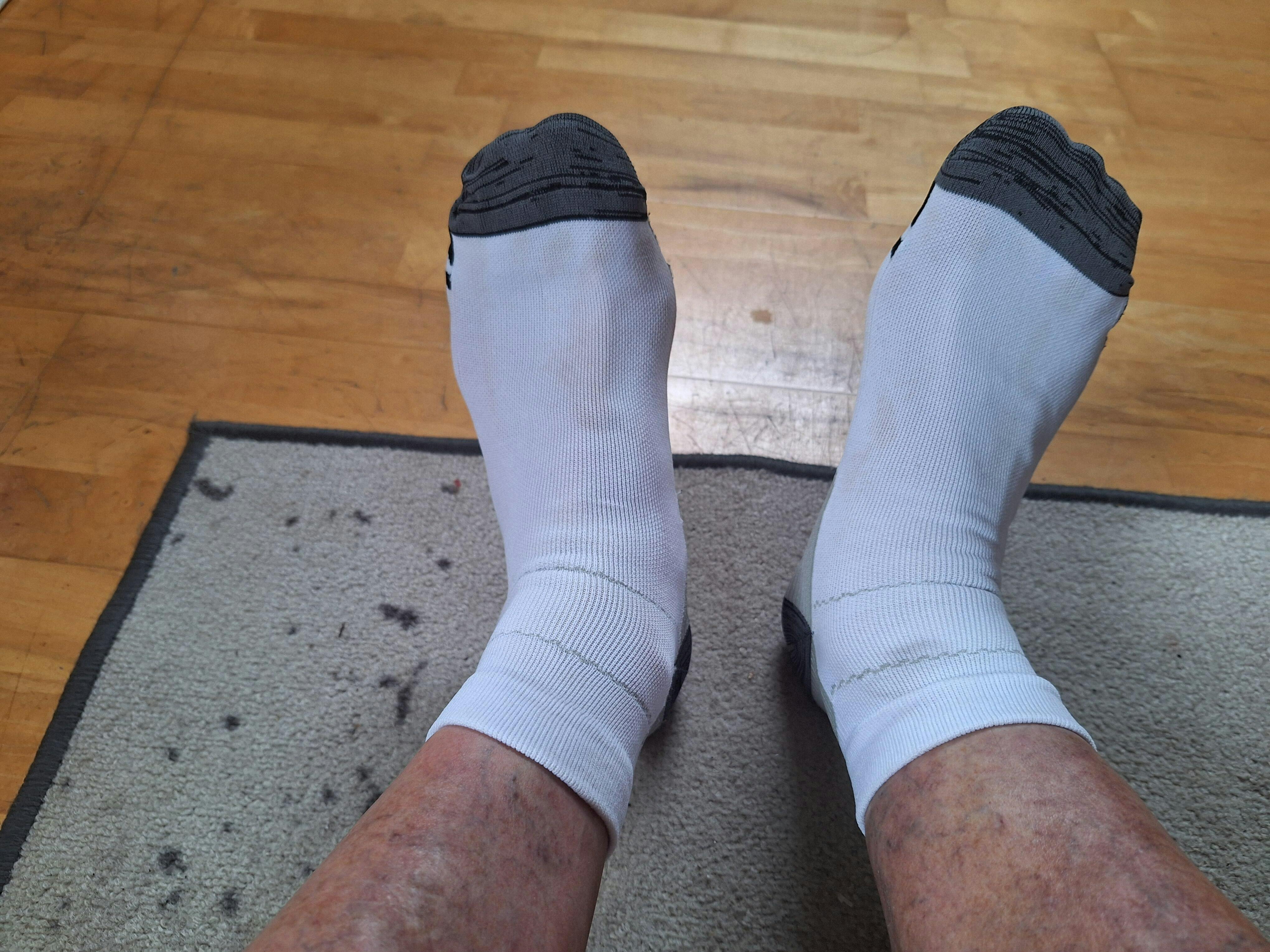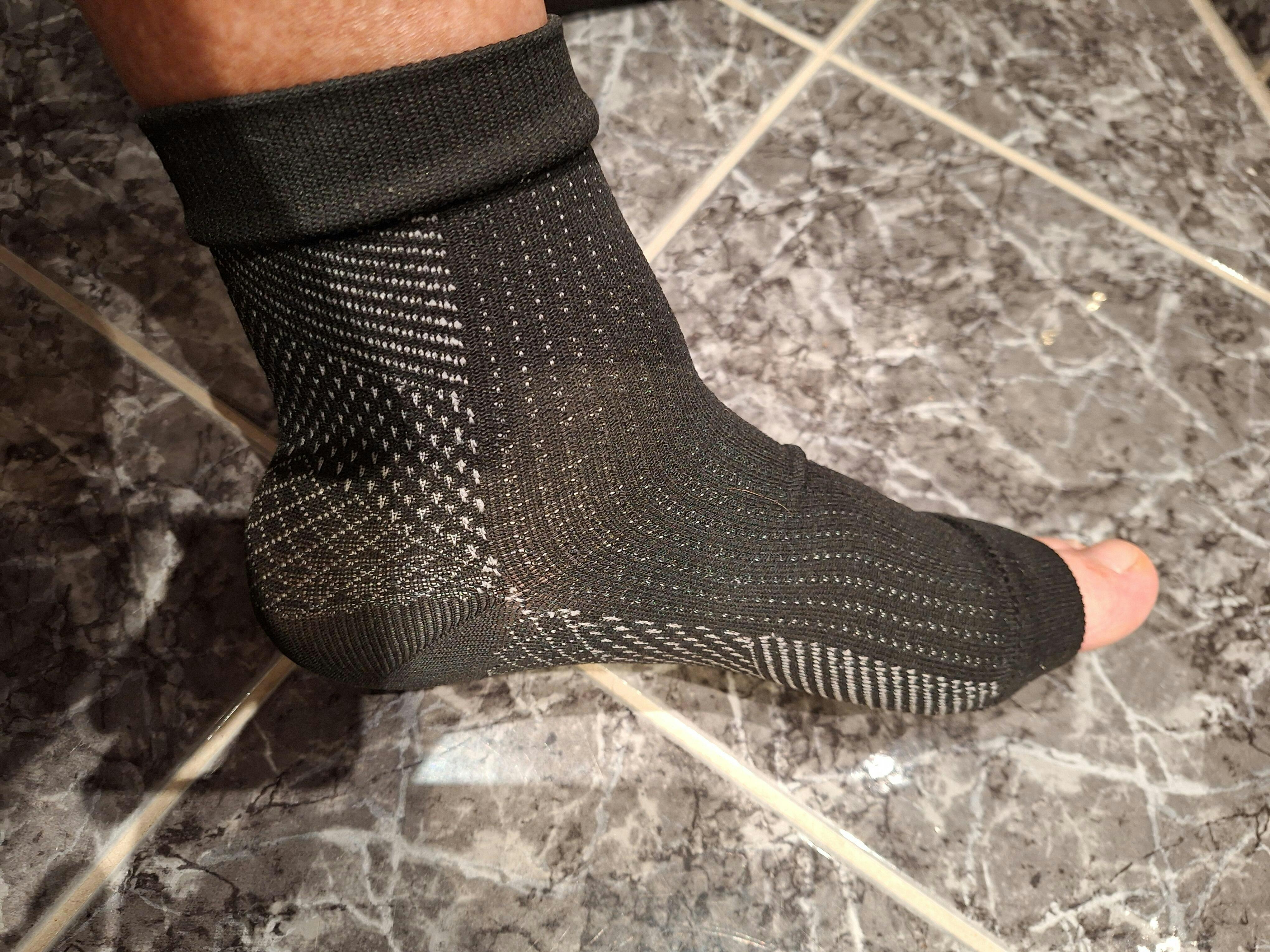 Die Socken sind wider Erwarten gut anzuziehen. Passform perfekt. Nach einem langen Tag im Stehen habe ich ein wunderbar, leichtes Beingefühl. Einfach super, sie passen perfekt, sie bleiben in der Position, also ich bin begeistert. Warum bin ich nicht eher drauf gekommen. Volle Punktzahl!